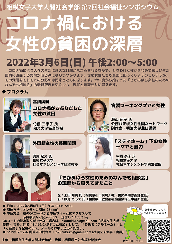 【人間社会学部】第7回社会福祉シンポジウム「コロナ禍における女性の貧困の深層」オンライン開催のお知らせ[3月6日・日曜日]