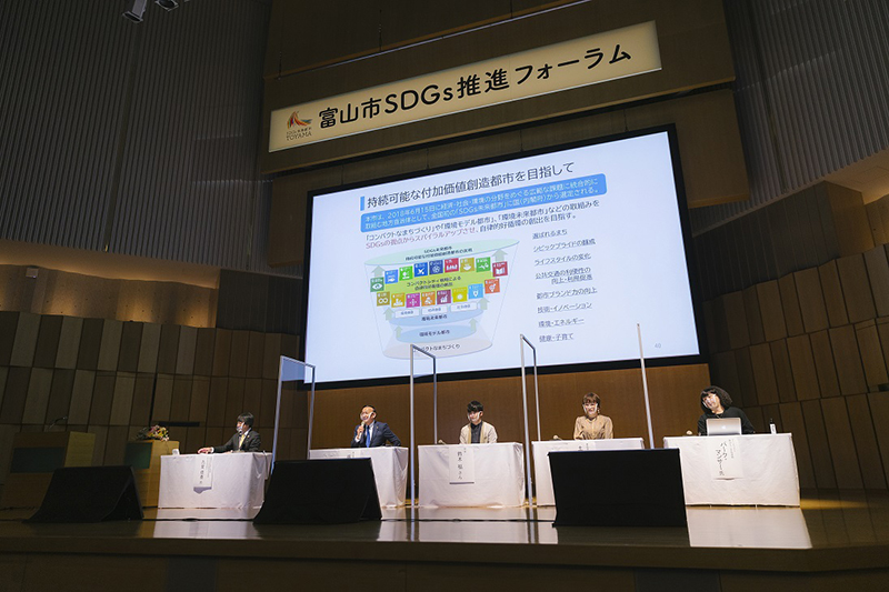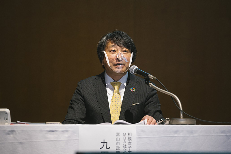 本イベントは、持続可能な開発目標(SDGs)を身近に感じてもらう事を目的とした「富山市SDGsウィーク」のメインイベントで、1月29日(土曜日)に富山国際会議場で開催されました。パネルディスカッションでは、同市政策参与でもある九里教授がコーディネーターを務め、パネリストとして俳優の鈴木福さんらも参加し、現在実践しているSDGsに関する取り組み紹介や、同市の未来について意見交換などが行われました。