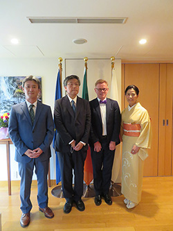 本学のピーター・J・マクミラン客員教授の書籍出版『松尾芭蕉を旅する 英語で読む名句の世界』(講談社刊)を記念し、7月11日(月曜日)にマクミラン客員教授の母国であるアイルランド大使主催の出版記念パーティーが大使公邸において開催されました。