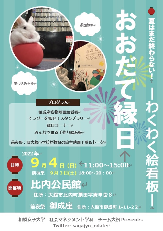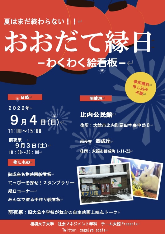 【社会マネジメント学科】本学学生が秋田県大館市との交流イベント『夏はまだ終わらない おおだて縁日-わくわく絵看板-』を開催しました