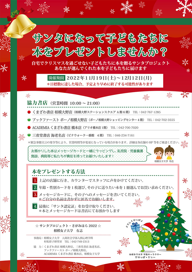 【人間心理学科】「サンタプロジェクト・さがみはら2022」について[11月19日~12月12日]