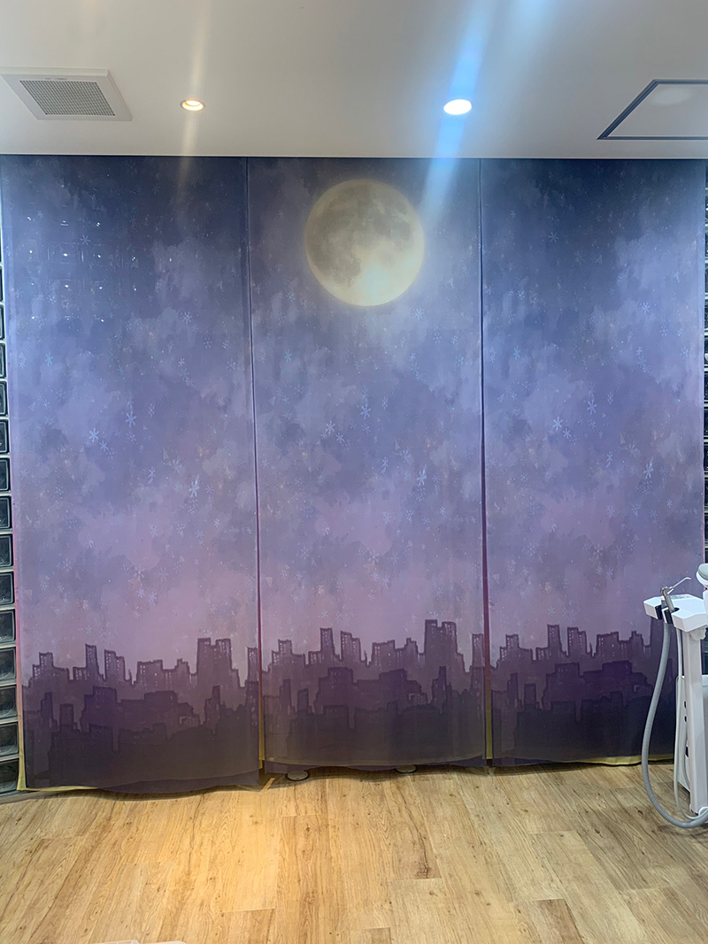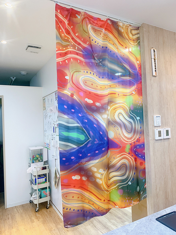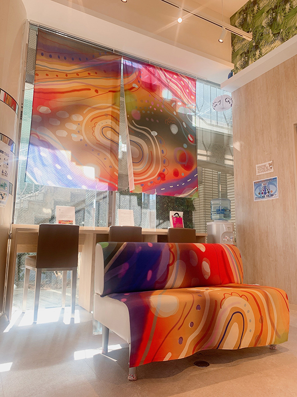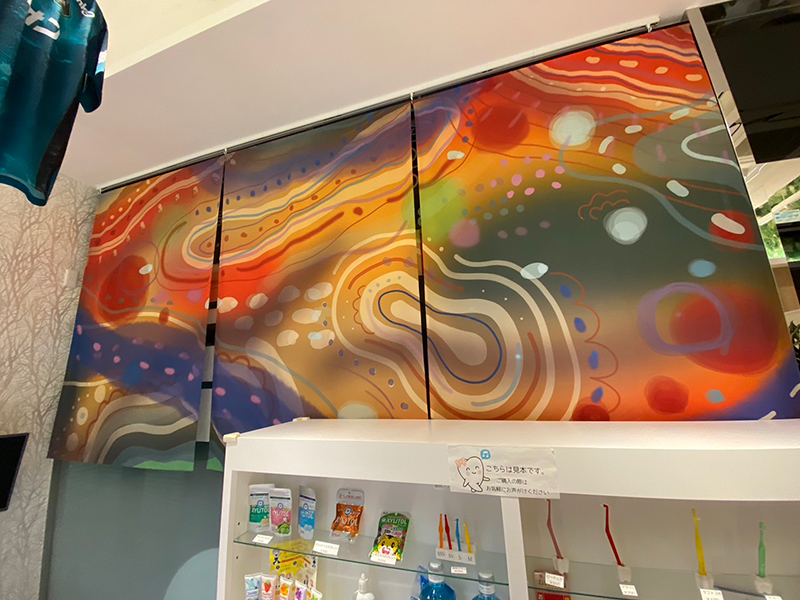 治療以外ではなかなか足を踏み入れない歯科を、いつでも気軽に入れる場所にしたい!というコンセプトのもと、スタッフの皆さんや地域の方々へのインタビューから始まり、ディスカッションや試行を重ねて院内をテキスタイル(布)で装飾し空間を演出するアイデアを立案しました。