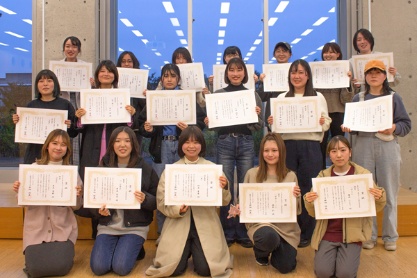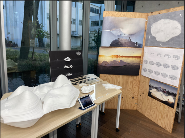 ガーデンホール・イングリッシュルーム・6号館・8号館・9号館の芝生の5箇所の会場に、本学科の特色である領域横断による学びが結実した、まさに集大成となる作品が並びました。表彰式では田畑学長もご列席くださり、思い出深い卒業制作展となりました。