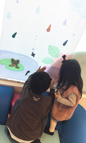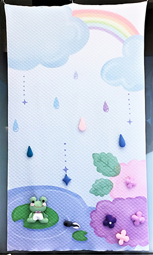 梅雨をイメージしたイラストを使用して、小さなお子様が楽しめるような作品を作りました。