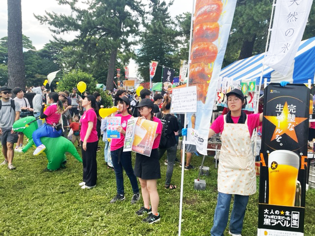 プロジェクトの学生も4年ぶりの参加で先輩学生からの引継ぎが出来なかったにも関わらず、しっかりと準備から販売までスムーズに運営し、「日光の天然のかき氷」「ブラジルソーセージ」「生ビール」を販売しました。かき氷のシロップは、前日、学生が手作りし、「イチゴ」「マンゴ」「ブルーベリー」の氷は初日で完売しました。ブラジルソーセージも用意した1200本は、プロが運営するお店と負けない接客サービスで、2日目の午後6時に完売するという人気ぶりでした。お客様の中には、「相模女子大学のOGです。毎年買いに来て応援しています」という声がけもして頂きました。