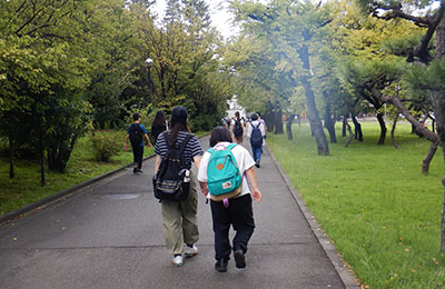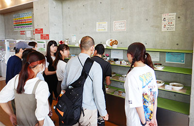 メニュー選びから銀河のみなさんと学生が一緒に選んで、各々が好きなものを注文してランチをいただきました。食事の後には、みんなでキャンパス内を散歩して交流を深めました。最初はお互いにぎこちない動きでしたが、一緒に活動するにつれて笑顔でコミュニケーションがとれるようになっていました。