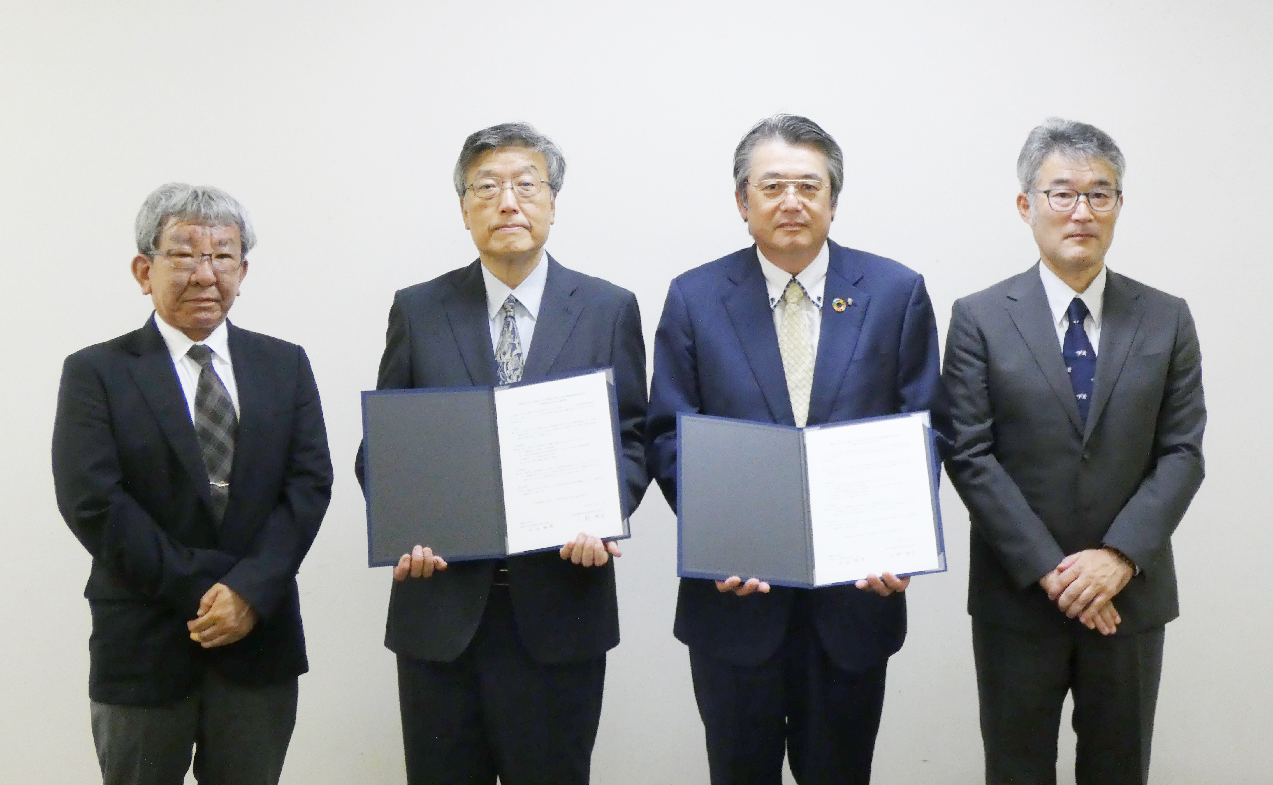 左から:奥村裕司副学長、田畑雅英学長、光明学園相模原高等学校 天野雅秀校長、光明学園相模原高等学校 知念洋副校長