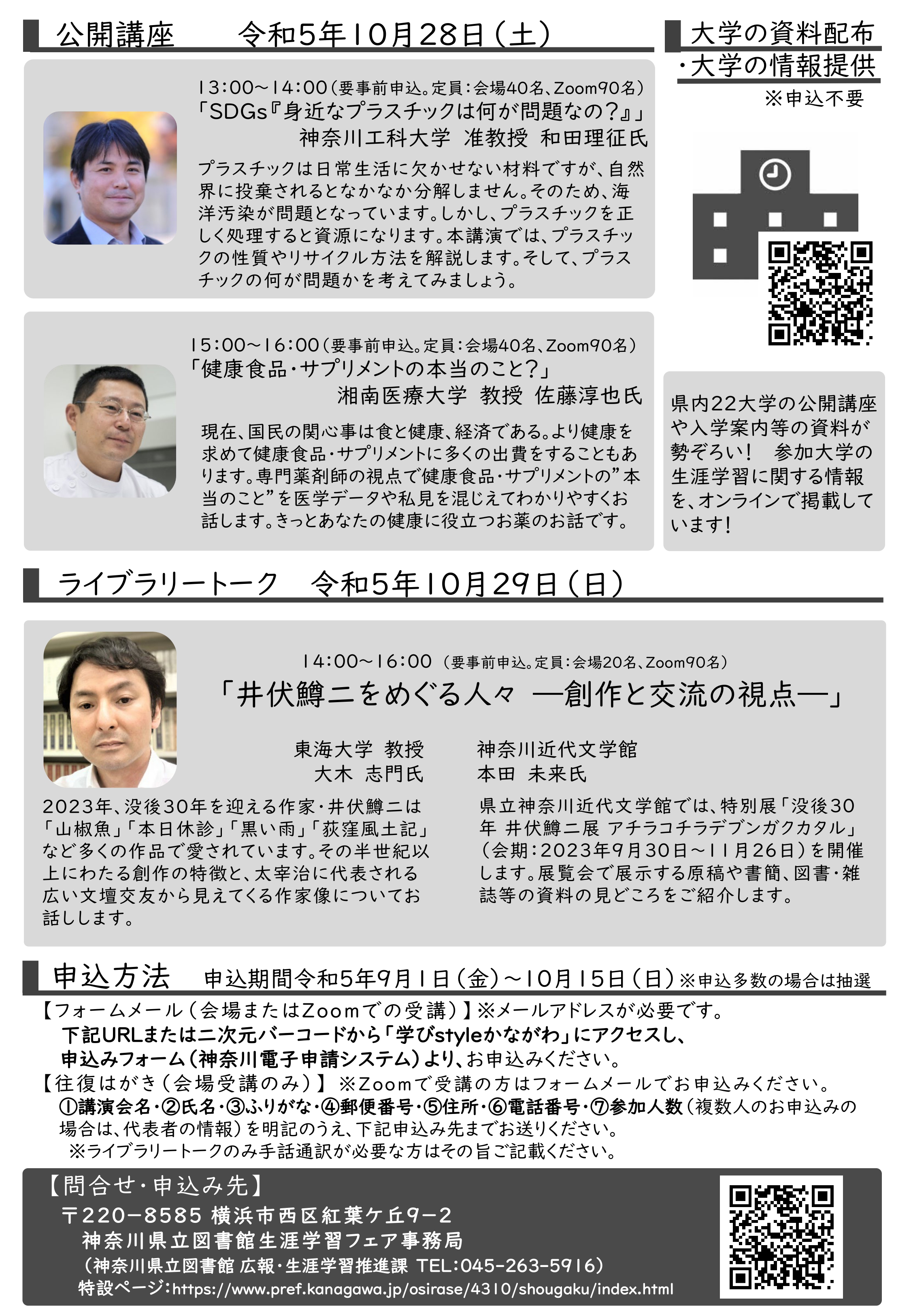 *イベント内容の詳細は、まなびStyleかながわ 神奈川県生涯学習サイト「第26回大学で学ぼう~生涯学習フェア~」特設ページをご確認ください。