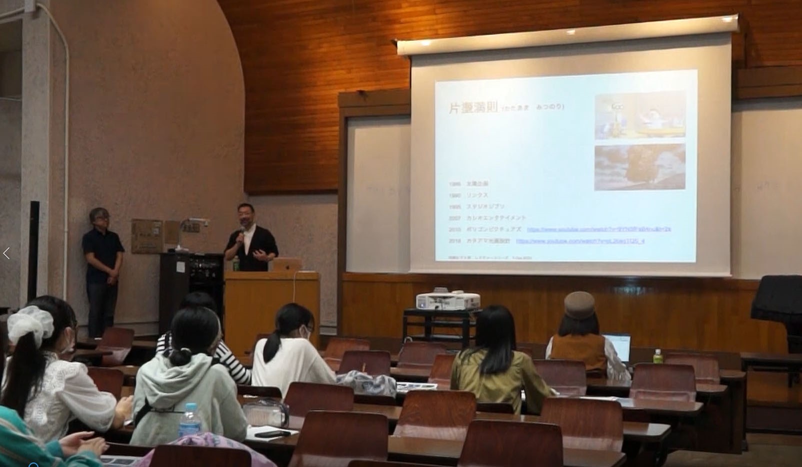 10月7日(土曜日)は、スタジオジブリでCG監督として「千と千尋の神隠し」「ハウルの動く城」などの作品で作画と融合する3DCGの表現に挑戦し、日本のコンピューターグラフィック業界に多大な影響を与え続けているCGアニメーションディレクターの片塰満則氏に講演していただきました。近作では、Netflix配信「GAMERA-Rebirth-」において造形監督と光画監督を務められており、ご自身の作品や体験談を通して、数多くの貴重なお話を伺いました。