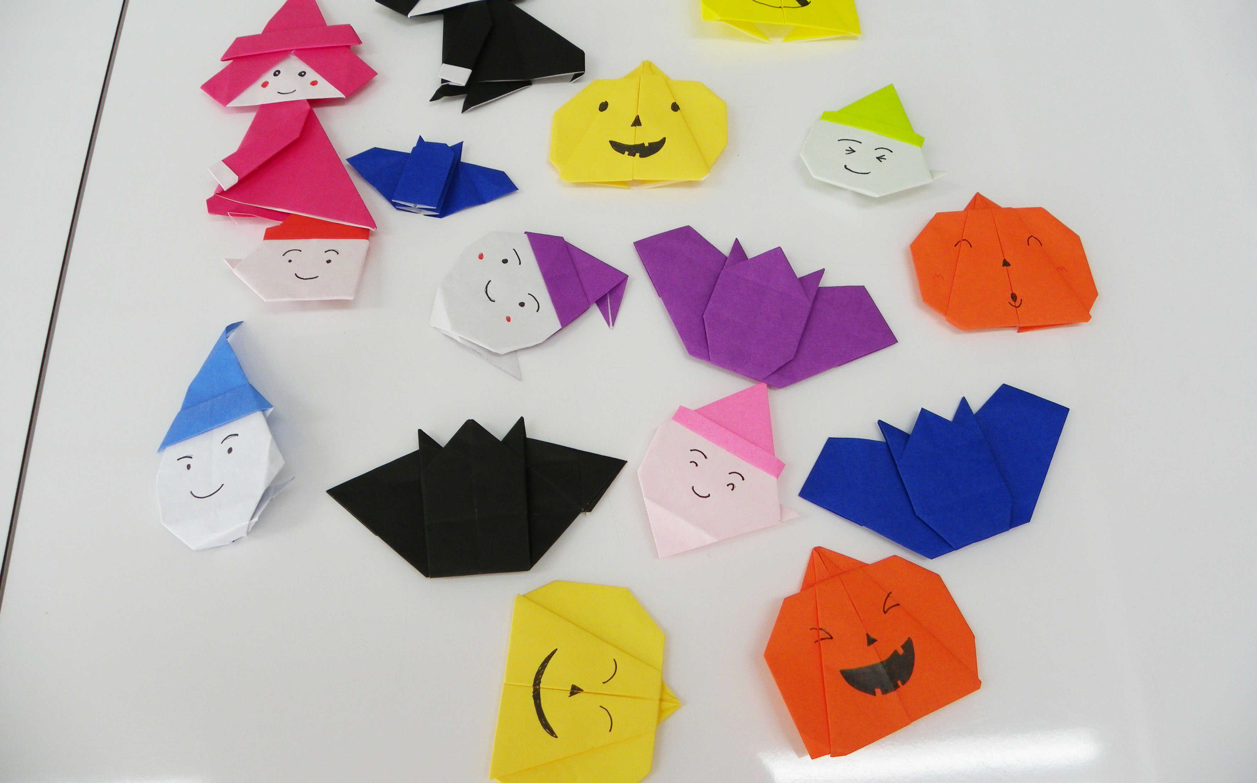 食事時間に学生達はネコのカチューシャをつけて仮装し、お菓子や手作りのハロウィンキャラクターの折り紙を、子供達にプレゼントしました。「ハロウィンでお菓子をもらう時、何て言うんだった?」「トリック オア トリート(Trick or Treat)!」と子供達が嬉しそうに答えてくれました。