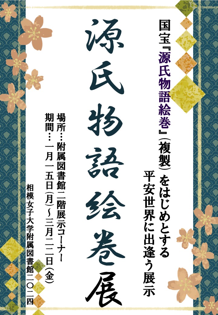 【附属図書館】2階展示「源氏物語絵巻展」のお知らせ[1月15日~3月22日] 2024年1月15日 紫式部が綴った『源氏物語』の魅力を国宝『源氏物語絵巻』(複製)で見てみませんか。 また1階展示コーナーでも、読んだら『源氏物語』を一層楽しめる、平安世界についての本を展示しています。 開催期間:2024年1月15日(月曜日)~3月22日(金曜日)開催場所:附属図書館2階展示コーナー [附属図書館] 関連リンク 附属図書館 相模女子大学附属図書館 附属図書館のHPはこちらからご確認いただけます。