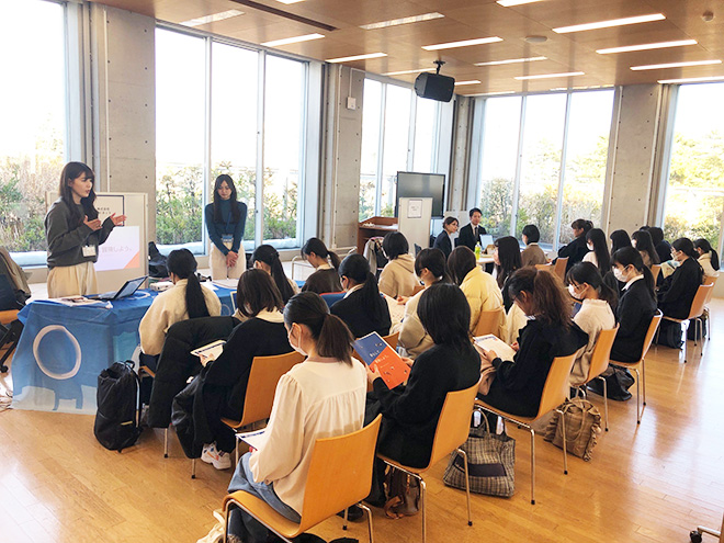 就職支援課では、大学3年生・短大1年生を対象とした企業研究会を、2月6日(火曜日)・7日(水曜日)・26日(月曜日)・27日(火曜日)の4日間、夢をかなえるセンターのガーデンホールで開催しました。
