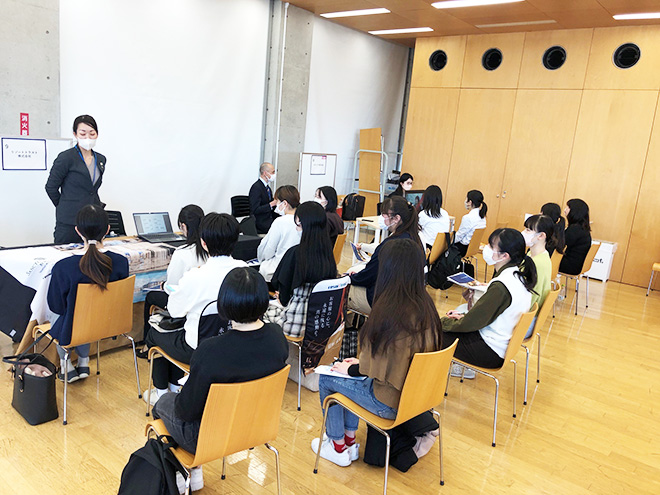 この企業研究会は、日程ごとに「地元企業」「事務職採用」「OG多数入社企業」などテーマを設定し、約40社の企業に参加していただきました。延べ400名以上の学生が参加し、就活解禁日を目前に、就職活動への意欲がより高まる機会となりました。