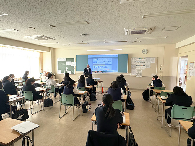 英理女子学院高等学校2年生の課題解決型探究学習に、社会マネジメント学科教員がチームで取り組む出前授業が始まりました。