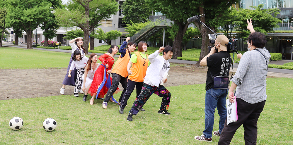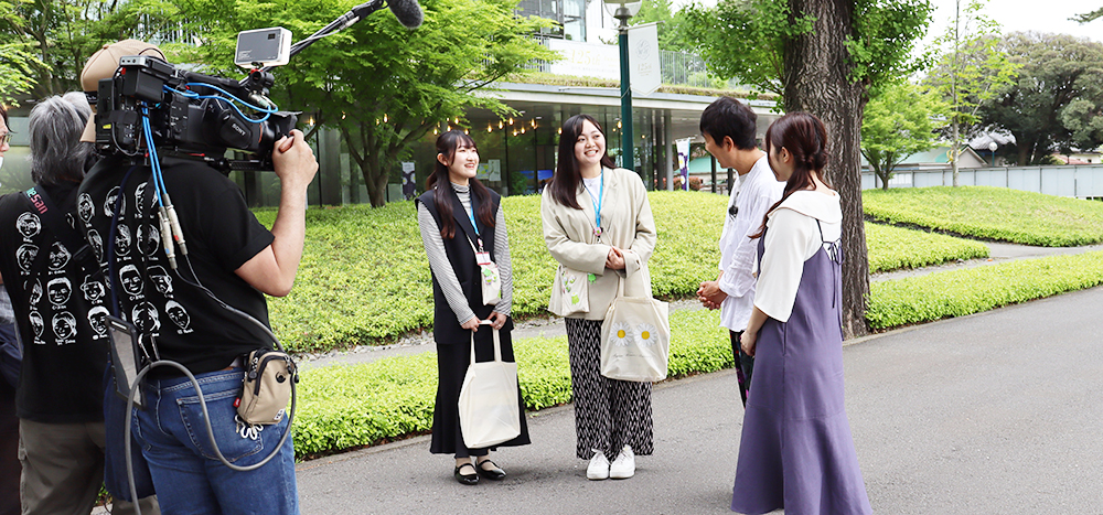 MCのお二人は撮影前のトークで「女子大に入ったのは初めて!」「キャンパスがとても素敵ですね!」と期待でいっぱいの様子でした。
