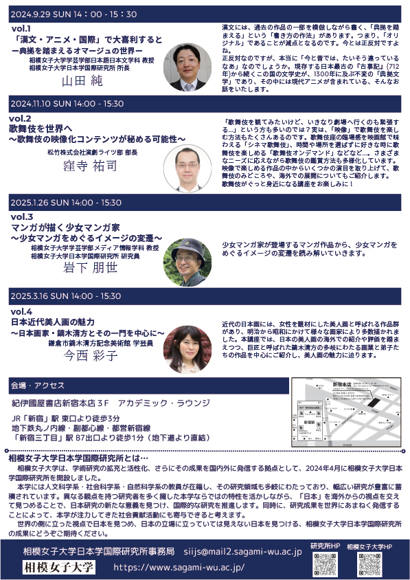 【日本学国際研究所】紀伊國屋書店アカデミック・ラウンジシリーズ「相模女子大学日本学国際研究所と学ぶ・知る・考える」を開催します