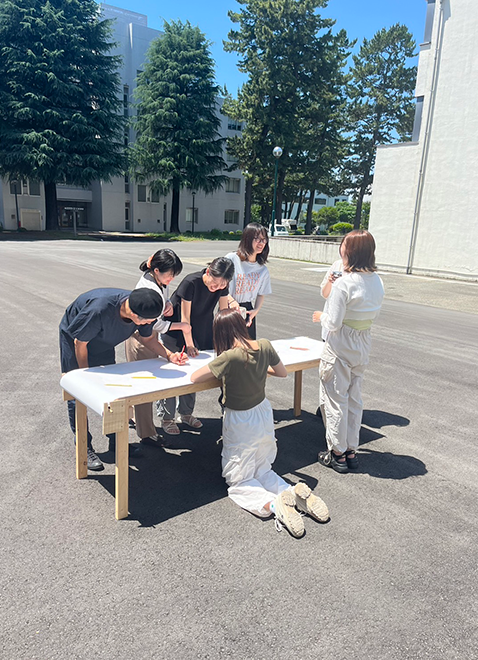 このフィールドワークで整理した課題をもとに、学生たちはコリドー街が「そこに居ていい」と感じられる空間となるような設えを、自らデザイン・制作しました。展示期間中は近隣住民や利用者にアンケートを行い、本取り組みの効果検証を行う予定です。