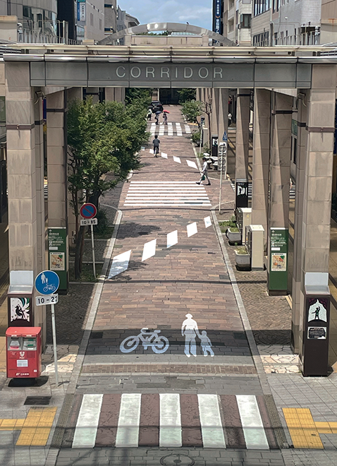 今回の取り組みでは、本学学生がコリドー街でフィールドワークを行い、にぎわい創出に関わる課題を整理しました。コリドー街は10時から22時まで歩行者専用(自転車含む)となりますが、「通行人はアーケード下の歩行者用通路を歩いており、コリドー街が歩行可能であることが知られていない」ことや、「『そこに居ていい』と思える場所がコリドー街には少なく、通行人の滞在時間が短い」といった課題が浮かび上がってきました。