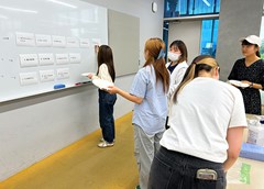 防災備蓄食品更新の際は、大船渡復興支援ボランティア委員会の学生が更新食品の選定を行っています(写真は2024年5月実施時の様子)