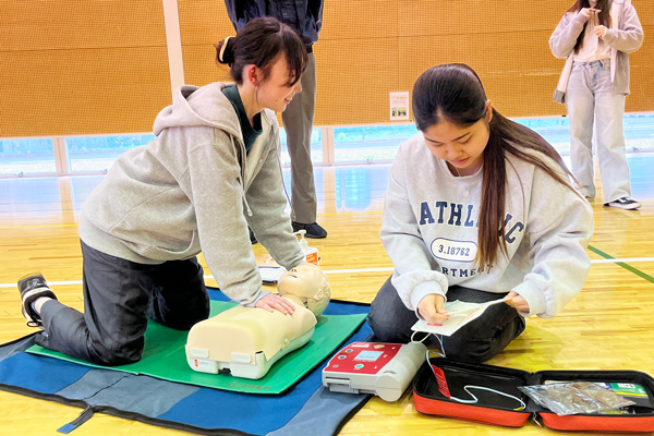 | (学生の感想) 私は高校生のとき、普通救命救急講習に参加したことがあります。しかし、普通救命救急講習とは異なり、より実践的な内容について学ぶことができました。 所属するゼミナールでは、教職課程を履修する学生をはじめ、ホスピタリティ業界への進路を志望している学生も多くいます。そのため、「もしもの事態」に遭遇したときのために、講習を受講することはとても大事なことだと感じています。 |