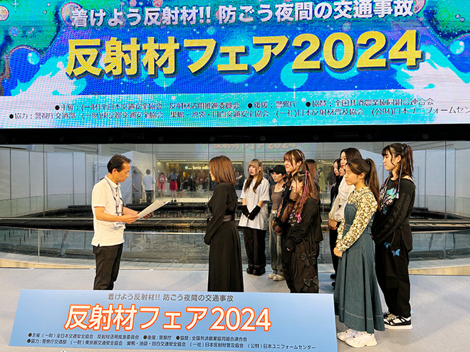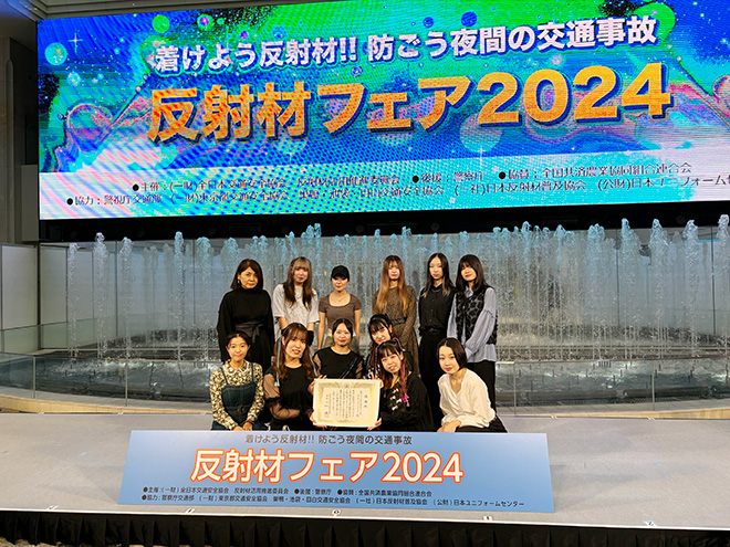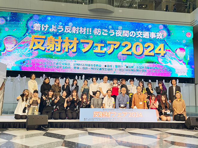 池袋サンシャインシティで開催された「反射材フェア2024」(主催:(一財)全日本交通安全協会)において、生活デザイン学科の学生がデザイン・製作した反射材付きの衣装が披露されました。その際のダンスパフォーマンスとファッションショーの映像が配信されましたので、ぜひご覧ください。