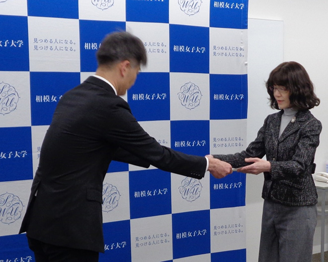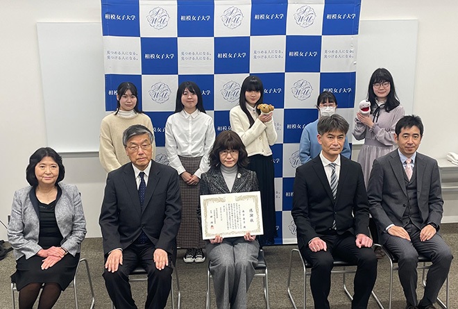 1月28日に本学にて贈呈式が行われ、体験学習会の運営に携わったゼミ生数名も出席しました。