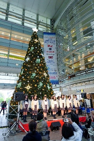- クリスマスツリーの点灯式に、相模女子大学中学部・高等部の生徒が 参加し、演奏や合唱を行います