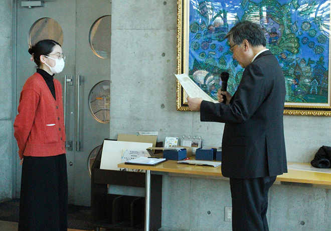 表彰式には田畑学長もご出席くださり、学生たちにとって忘れられない思い出深い卒業制作展となりました。