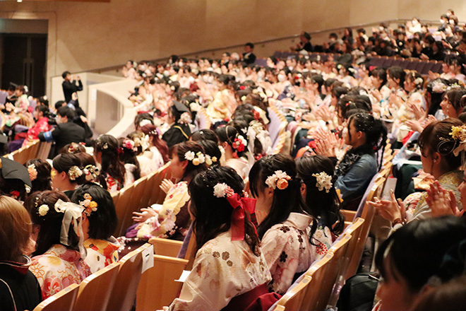午前10時30分より人間社会学部、栄養科学部、短期大学部、午後2時より社会起業研究科、学芸学部の二部構成で執り行われました。