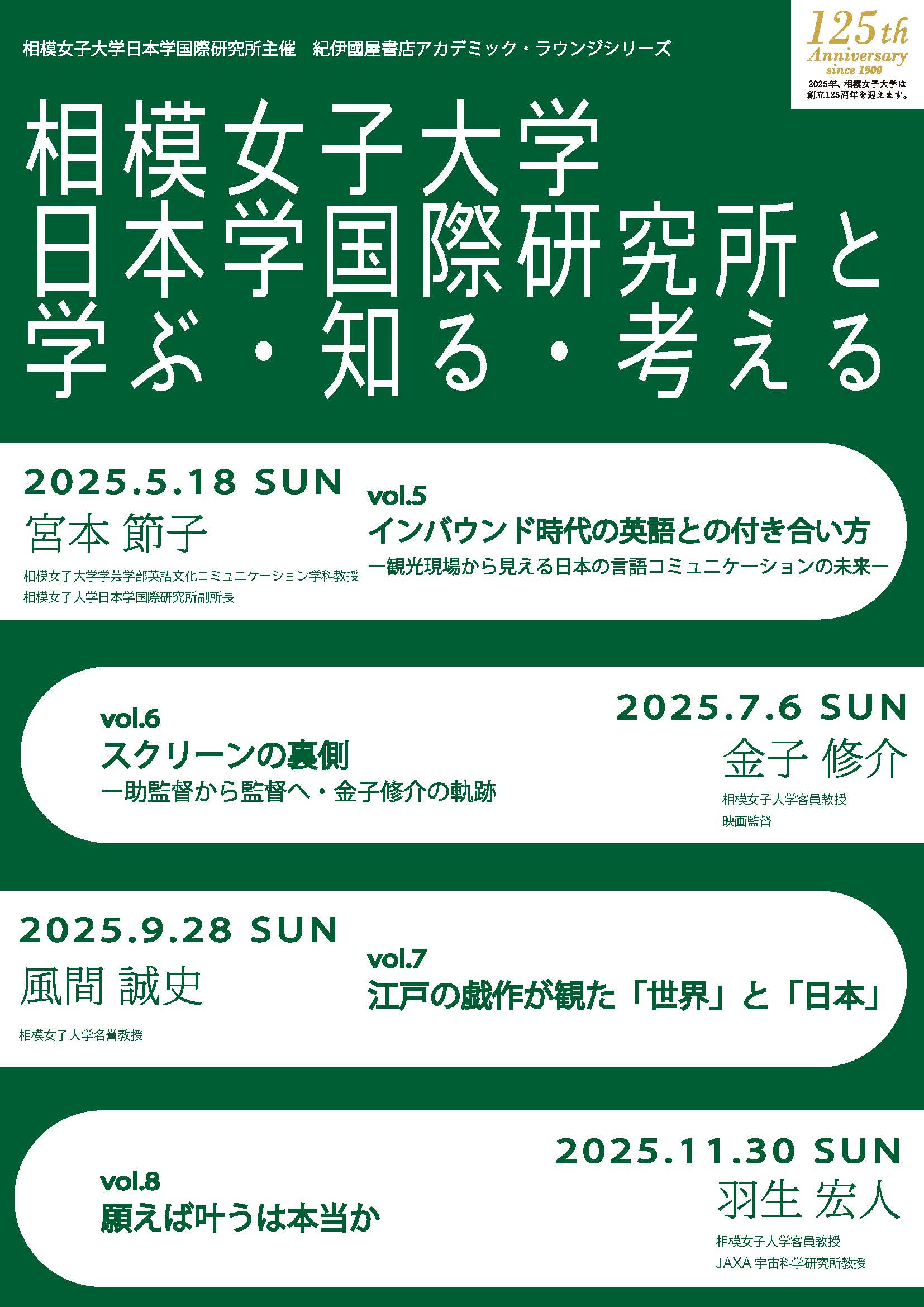相模女子大学日本学国際研究所主催 紀伊國屋書店新宿本店アカデミック・ラウンジシリーズ「相模女子大学日本学国際研究所と学ぶ・知る・考える」を、2024年度に引き続き2025年度も開催いたします。