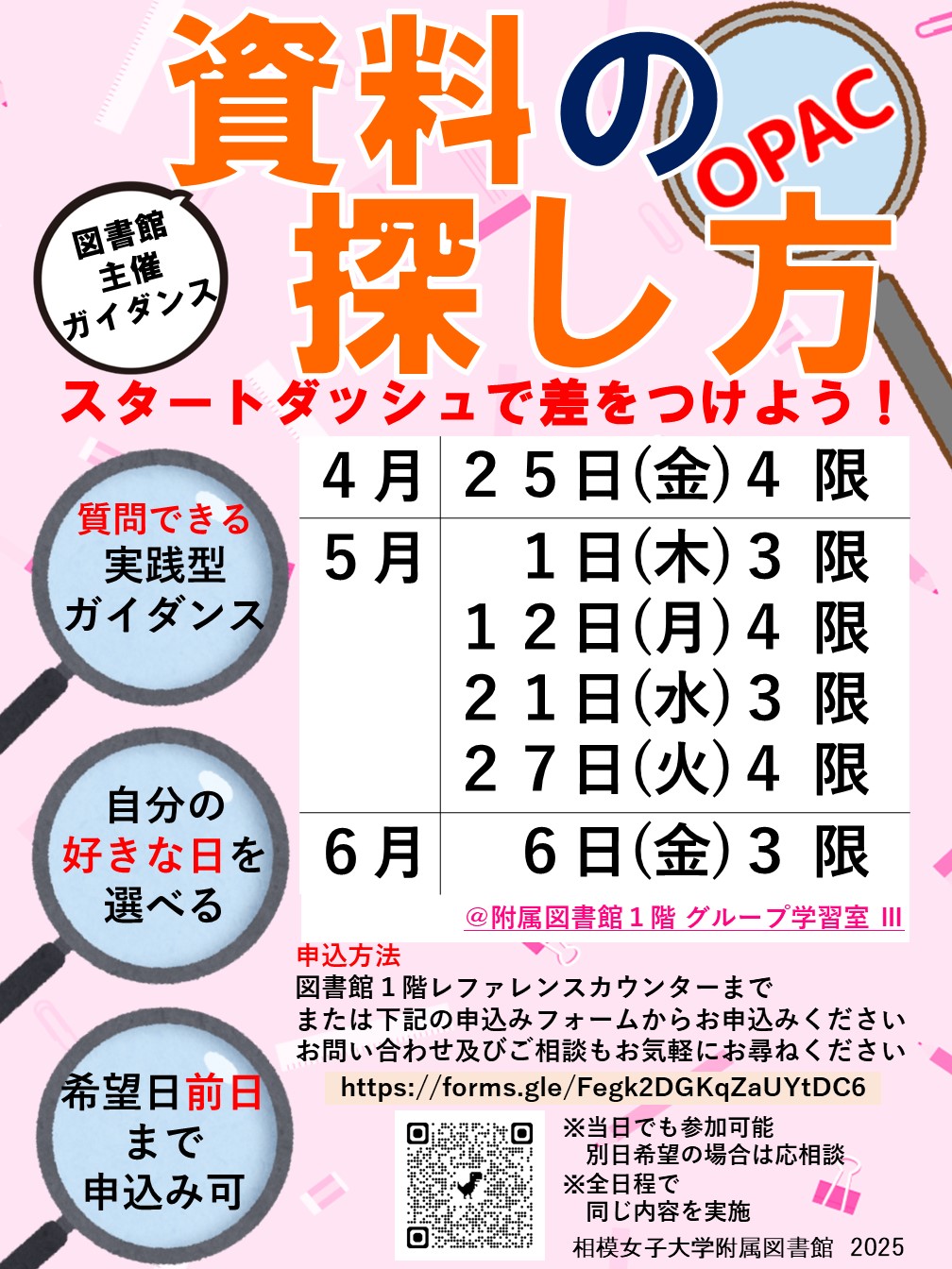 【附属図書館】「資料の探し方ガイダンス」開催のお知らせ
