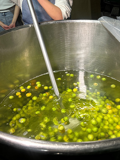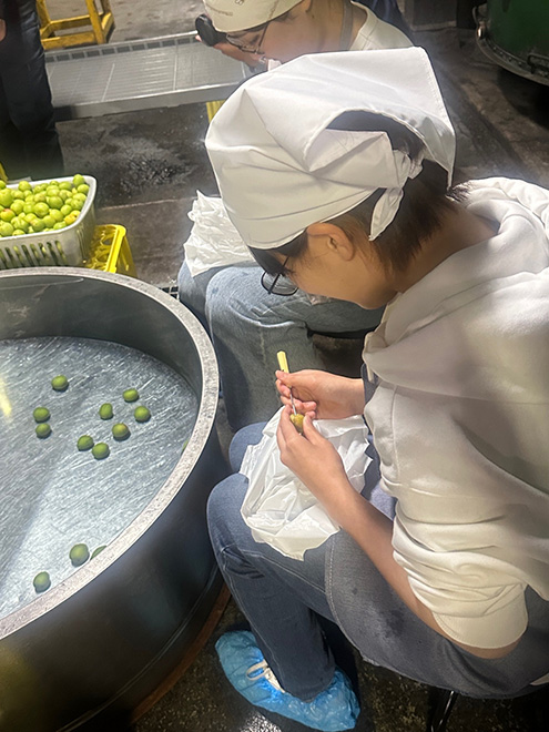 特に梅の実のヘタを取る作業は大変細かいもので、梅酒の製造工程には丁寧な人の手仕事がたくさん関わっていることを、学生たちは学びました。