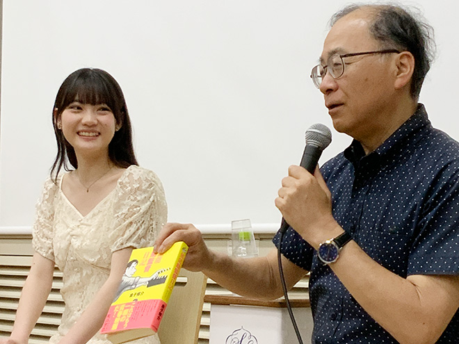 映画上映後には、メディア情報学科の塚田修一准教授が聞き手となって、金子修介監督と上間夏月役の星乃あんなさんによるトークイベントを行い、撮影時の裏話などが披露されました。