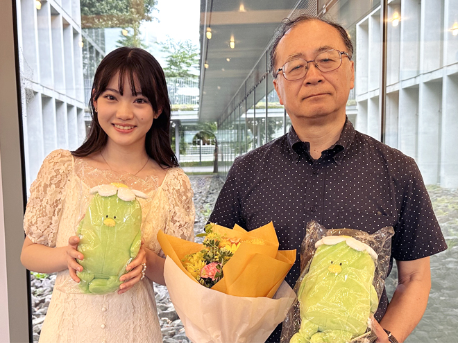 また、翌6月8日が金子監督の誕生日ということで、サプライズで花束とさがっぱジョーのぬいぐるみを監督に贈呈してお祝いをしました。