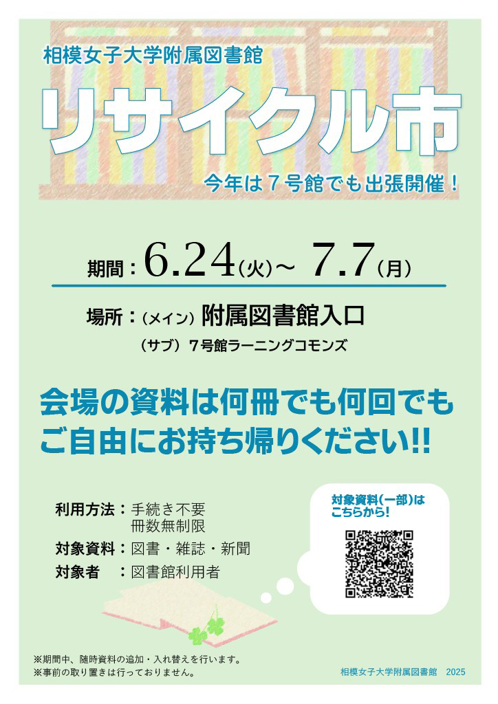 ホーム >  大学からのお知らせ >  【附属図書館】リサイクル市開催のお知らせ