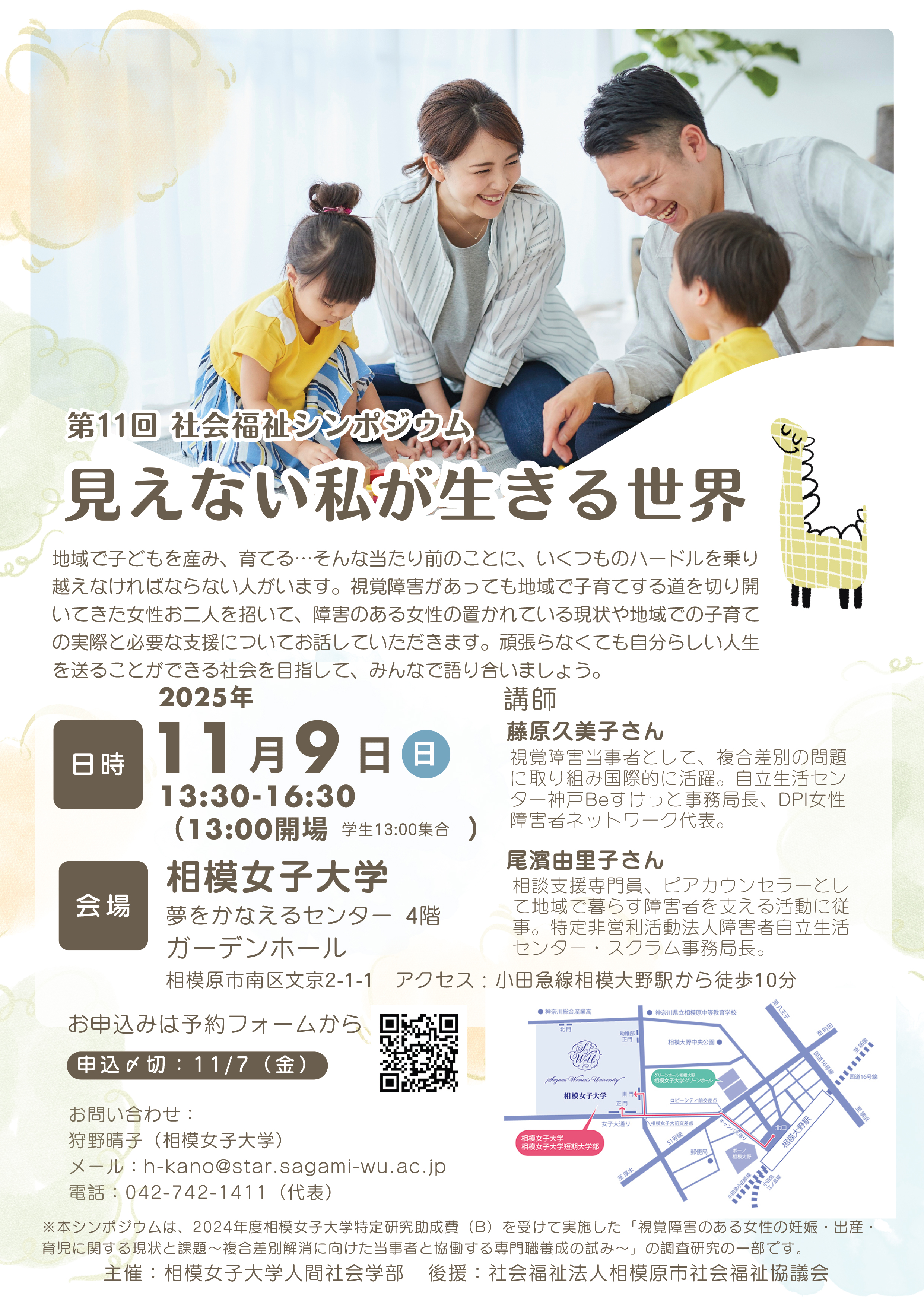 【人間社会学部】第11回社会福祉シンポジウム「見えない私が生きる世界」開催のお知らせ[11月9日・日曜日]