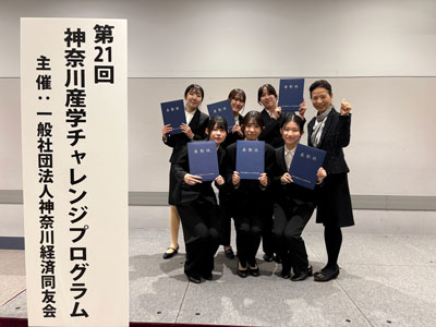 本プログラムには、神奈川県内18大学から240チームがエントリーし、その中から選ばれた入賞チームは74チーム(最優秀賞30チーム、優秀賞44チーム)と、非常に競争率の高いプログラムの中で、本学から7チーム参加し、3チームが入賞するという優れた成果を収めました。