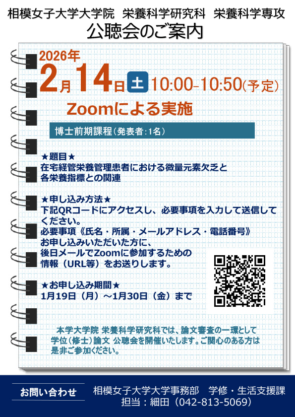 【栄養科学研究科】公聴会 オンライン開催のお知らせ[2月14日・土曜日]