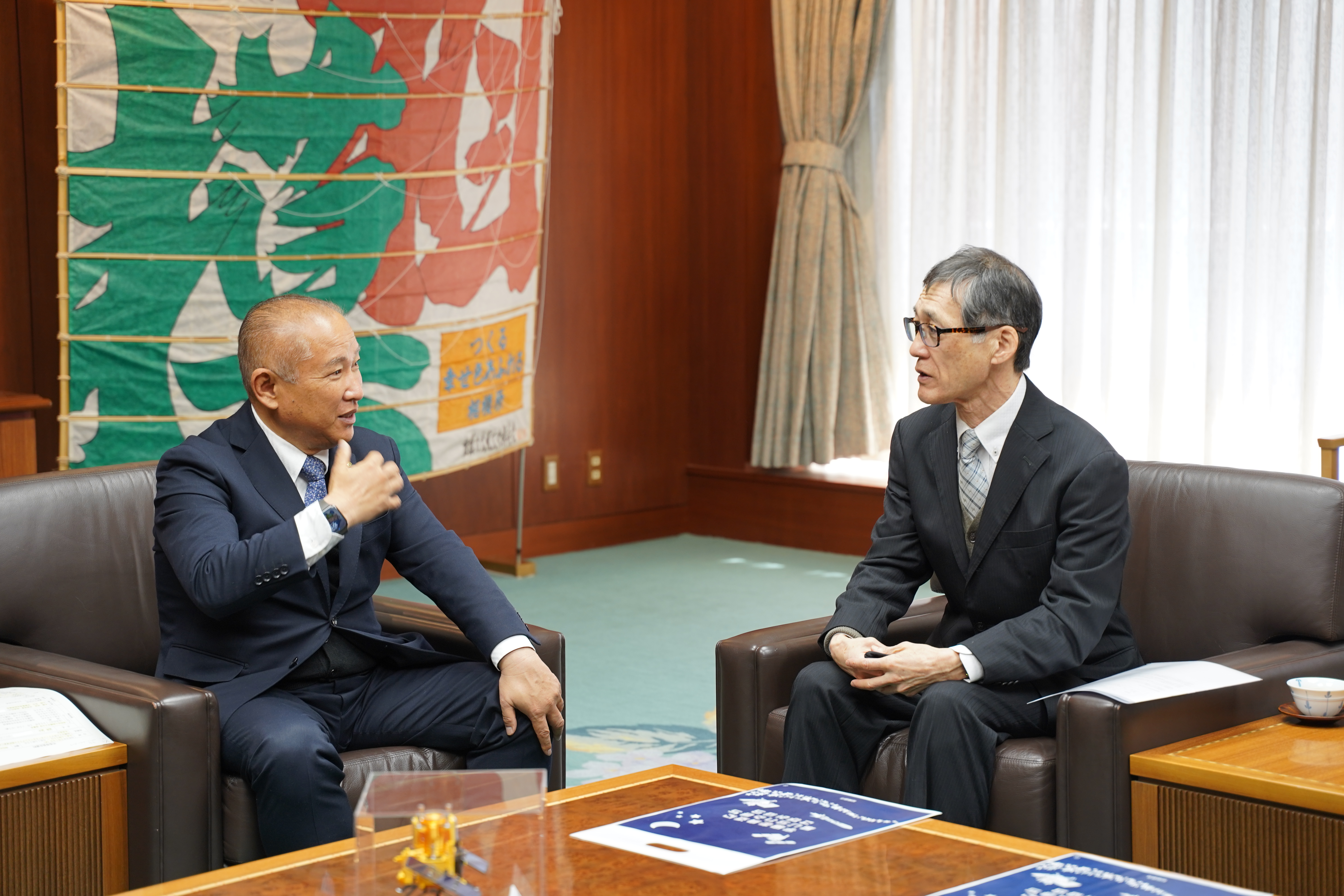 これを受け、2026年2月19日、本学理事長の風間誠史が相模原市役所を訪問し、本村賢太郎市長を表敬訪問いたしました。本村市長からは「相模女子大学には、長年にわたりネーミングライツ契約を継続していただいており、心より感謝申し上げます」とのお言葉を頂戴しました。