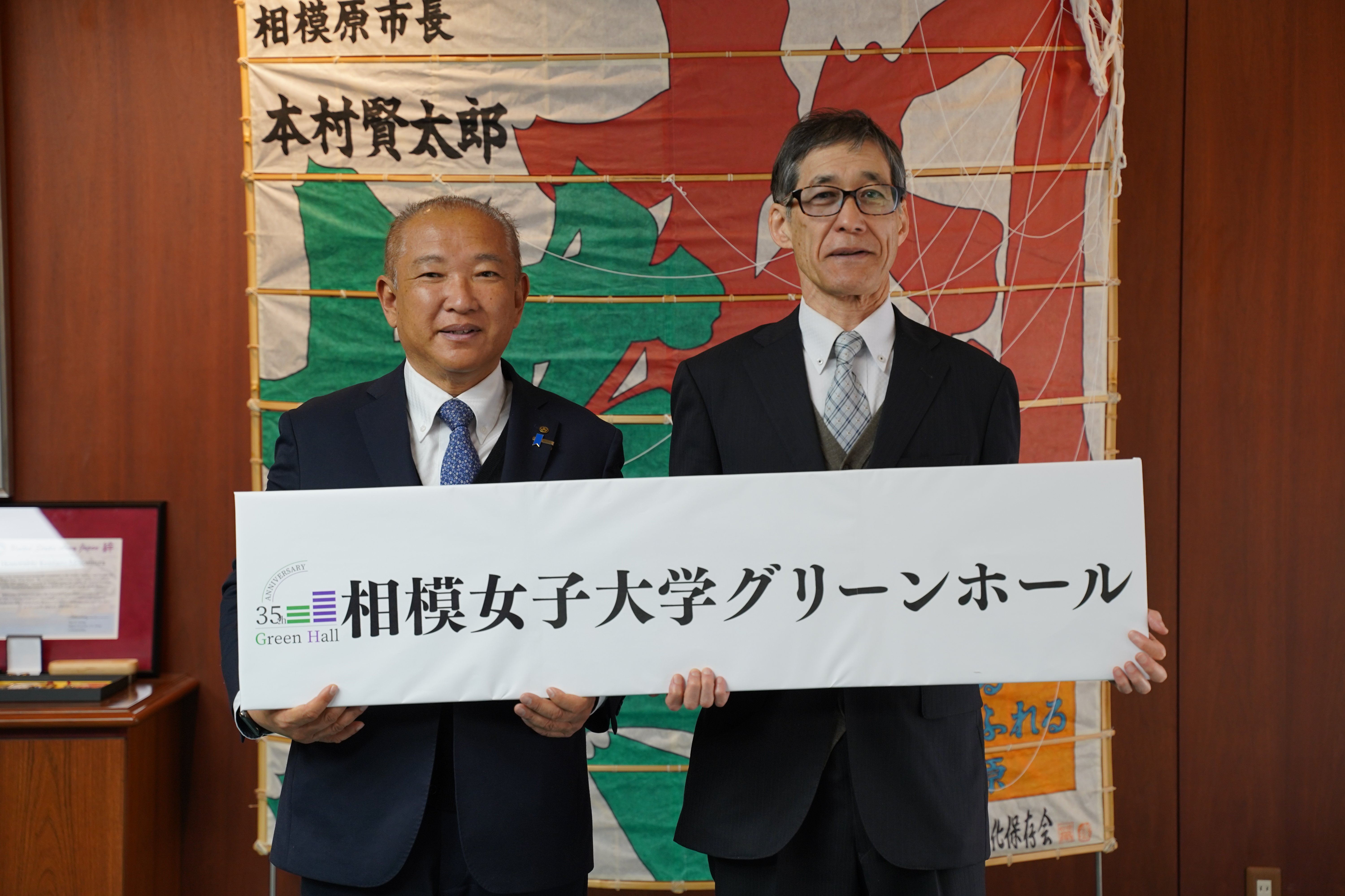 相模女子大学グリーンホール ネーミングライツ契約更新に伴い、本村賢太郎相模原市長を表敬訪問しました