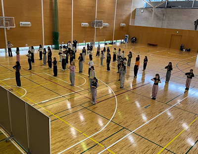午前のダンスワークショップでは、西野氏による丁寧かつ的確な指導のもと、初心者から経験者までそれぞれのレベルに応じて楽しみながら取り組むことができました。参加者同士が自然と打ち解け、会場全体に一体感が生まれる様子が印象的でした。最後には希望者によるミニ発表も行われ、学びの成果を共有する貴重な機会となりました。