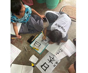 現地では、習字で「平和」や「愛」といった漢字を書いたり、折り紙(紙飛行機・かえる・ハート・手裏剣)やとんとん相撲など、日本の遊びを取り入れた交流活動を実施しました。言語の違いにより意思疎通に戸惑う場面もありましたが、子どもたちが積極的に参加してくれたことで、終始活気のある雰囲気の中で活動を行うことができました。