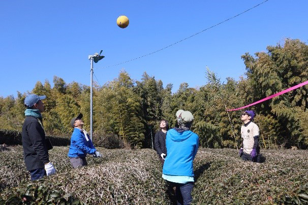 茶畑でバレーをどうやってやるのか、実施前は想像がつきませんでしたが、やってみたらとても楽しくてコレはありだと思いました。畝でのバウンドや特別ルールなど盛り上がる要素が満載だったと思います。動きに制限があり、激しい運動にならないのも参加ハードルが低くて良いと思いました。