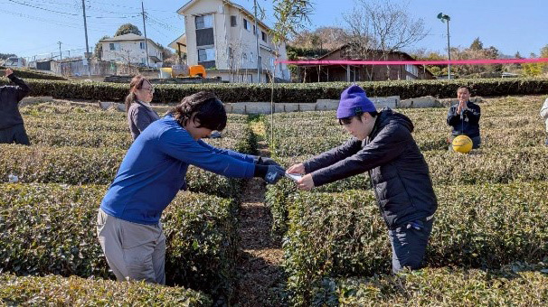 「茶畑の担い手を増やすには?」といろいろ考えてきた中で、茶摘み体験では耕作作業のイメージが掴みにくく、かといっていきなり作業体験ではハードルが高いと考えていました。そこで、「何が茶畑で楽しめる仕掛けはないか?」と考えていた時にご当地バレーボール大会の取り組みに出会い、「茶畑で展開できたら!」と思いました。同期が鹿児島大会を成功させたことも背中を押してくれました。藤川先生はじめ社研有志の協力を得て、今回実行することができました。実際にやってみたら想像以上に参加者が楽しんでいたため、とても良かったです。この流れに乗って、茶畑から地域を盛り上げていきたいです。