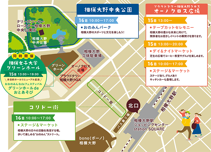 本イベントは、「相模大野のみんな=通称『おのみん』」が主役となり、まちの魅力と可能性を再発見する回遊型イベントです。プラウドタワー相模大野クロス オーノクロス広場・コリドー街・相模大野中央公園・相模女子大学グリーンホールとその周辺を舞台に、人と活動がつながる特別な2日間を創出します。
