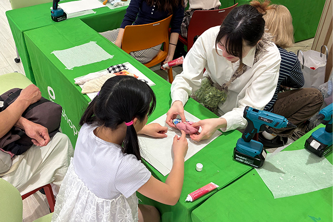 ボーノ相模大野ショッピングセンターなどに設置されている衣料回収ボックスで回収された衣料を活用し、生活デザイン学科の有志学生が再び着用できる衣類やアクセサリーなどにアップサイクルした作品を展示・販売します。あわせて、回収された衣料を活用した親子向けワークショップを開催。このワークショップは2026年4月にボーノ相模大野でも開催し、多くの参加者でにぎわいました。子どもたちが資源循環やアップサイクルについて考えるきっかけづくりを目指します。(担当:生活デザイン学科教授・牛尾卓巳)
