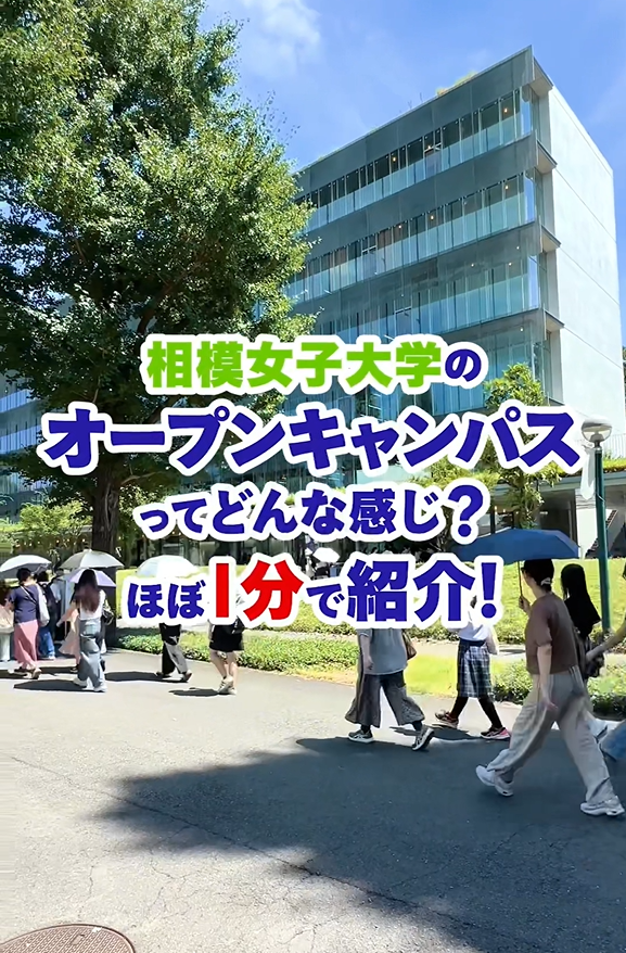 WEBで見る「相模女子大学」はこちら 相模女子大学「Renewal Movie」 「Renewal Book 」上の画像をクリック♪ 「SAGAJO Life」上の画像をクリック♪ NEW! 2026年度より新設の学科紹介Movie ページ内目次 大学イメージ動画 TVCM 相模女子大学のココが好き!RANKING GOOD IDEA STORY 大学イメージ動画 【相模女子大学】大学イメージ動画 相模女子大学・相模女子大学短期大学部 紹介ムービー キャンパスツアー 相生祭へ行こう! ワタシの推し TVCM さがっぱと新学科誕生篇 相模女子大学のココが好き!RANKING 相模女子大学の好きなところ!をランキング形式でご紹介! GOOD IDEA STORY 丸山千枚田魅力発信プロジェクト 各ページへのアクセスは、下のアイコンをクリック! 関連リンク オープンキャンパス 入学・入試案内 資料請求