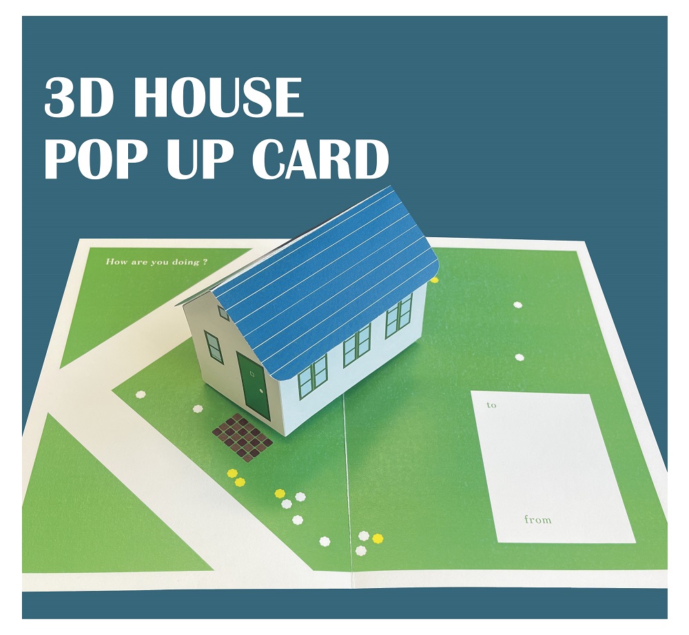 カードを開くとミニチュアハウスが建ち上がる、組み立てることでその仕組みを学びます。屋根や壁の色を組み合わせて“ミニチュアハウス”をコーディネートしましょう。
