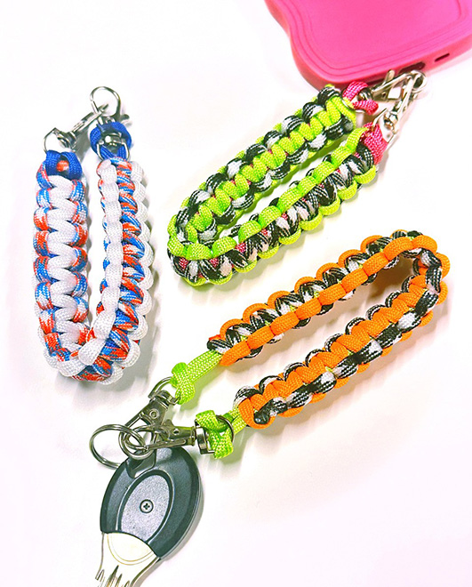 パラコードで、色のセンスを自由に表現しよう。 選ぶのは、あなたの「好き」なカラー。 組み合わせ次第で、ポップにもクールにも、シンプルにも大胆にも。一見むずかしそうな「マクラメ編み」も、コツをつかめば意外と簡単。スマホ、バッグ、鍵に付けたり、世界にひとつの、あなたのセンスが光るストラップ、つくってみませんか?(制作目安30分)