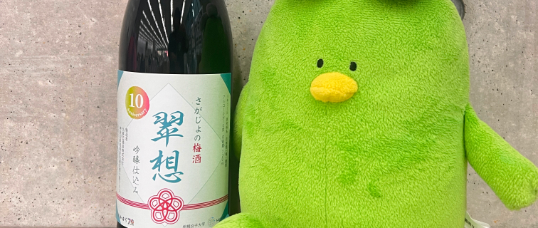 オリジナル梅酒の紙袋ロゴをデザイン本学オリジナル梅酒「翠想」発売10周年記念の販売用紙袋のタグをデザインし、配布しました。学生が本学と梅の歴史について調査し、他の梅酒との差別化を意識してコンコンセプトを策定し、デザインに仕上げました。